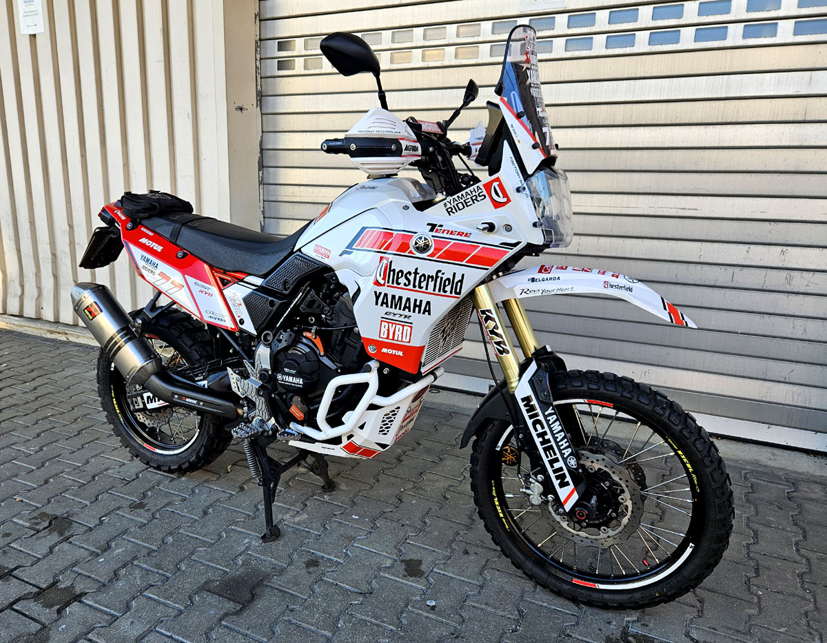 -- Akrapovic Endschalldämpfer Euro 4 - Luftfilterkasten modifiziert für mehr Luft GYTR - K&N Luftfilter - Geändertes Mapping Gemischanfettung (+15) - Zweiteiliger Zieger Motorschutz - Untere Sturzbügel von Zieger - Geänderte Umlenkhebel + 2,5 cm Sitzhöhe - Austauschfeder Federbein 90 Nm - 4 cm höhere einteilige YAMAHA Rallysitzbank - Lenkerstrebe für Roadbook - Lenkererhöhung um 2 cm - ACERBIS X Factor Handprotektoren mit Alubügel - Stahlflexbremsleitung vorne von KEDO - ACERBIS Rahmenschutz - Hoher Rallye Fender in Verbindung mit teilweise tiefen Kotflügel - Hohe Spoilerscheibe von ERMAX - Höhenverstellung für die Scheibe von KEDO - YAMAHA Makrolon Scheinwerferschutz - Kurzer stark modifizierter Kennzeichenträger von T7 Rallye - Raximo Hebel - KTM Kettenschleifschuh unten - OTR Kettenschutz - GYTR Ritzelabdeckung - YAMAHA Offroad Kettenführung unten - Rallye Positionslicht als zusätzliches Bremslicht - Sonderdesign von mir - Aufkleber von TT Kiosk - Andere LED Blinker - Modifizierter Hauptständer von YAMAHA - Bereifung HEIDENAU K60 RANGER - Sitzhöhe an der tiefsten Stelle 96 cm - GARMIN GPS und Roadbook - DID VMX 2 Kette, JT Racing Ritzel, SUPERSPROX Kettenrad - u.v.m Stand 10/ 2025 |