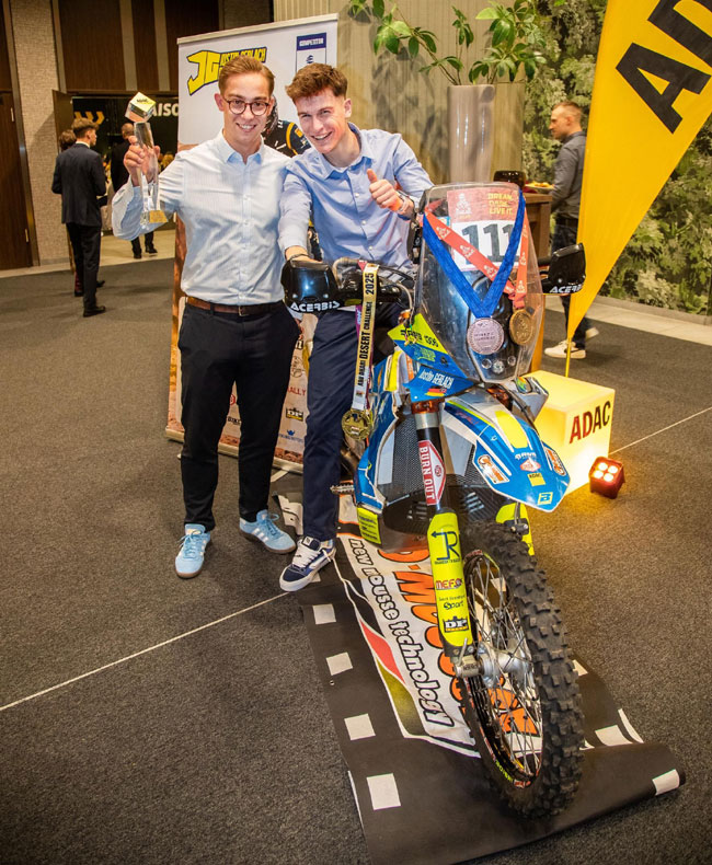 Justin ist ein Berliner Junge, ich kenne seinen Vater Hardin, seit über 30 Jahren, er fuhr damals auch mal eine XT 600 Z TÉNÉRÉ Model 1VJ, die natürlich für seine Ambitionen nicht ausreichte, denn Hardin ist ein absolut begeisteter Offroader, der selbst schon an vielen Wettbewerben teilgenommen hat. Darunter sind z.B. die zweimalige Teilnahme bei der Tunesien Rallye Optik 2000, denn Hardin ist ein Kind seiner / unserer Zeit, der die Rallye Paris - Dakar, als das Grösste ansah und natürlich, wie ich ein absoluter Fan dieses atemberaubenden Wettbewerbs, der härtesten Rallye der Welt war und ist. So kannte Hardin z.B. Fabrizio Meoni und Richard Saint, seine Helden noch persönlich von diesen Events. Als Justin geboren wurde, stellte Hardin diese krassen Rallye Teilnahmen jedoch zurück, aus Rücksicht auf die Familie, denn dieser Sport ist nach, wie vor, einer der aller gefährlichsten Hobbys, das man überhaupt haben kann. Er fuhr nur noch aus Spaß am Geländefahren mit seinen diversen KTM Enduros. Erst später fuhr er auch wieder die Breslau Rallye mit. Mit 5 Jahren bekam Justin sein erstes Offroad Motorrad und lernte nun vom "Meister", seinem Vater das Fahren im Gelände von der Pieke an. Er wuchs auf mit den berauschenden Storys von der legendären Dakar Rallye, deren Helden, dem Mythos, den Motorrädern und entwickelte sich so natürlich zum absoluten Crack. Seit Justin 17 Jahre alt war, fuhr er jedes Jahr mindestens eine Rallye und seit 2018 sogar jedes Jahr zusammen mit seinem Vater die extrem harte Breslau Rallye.